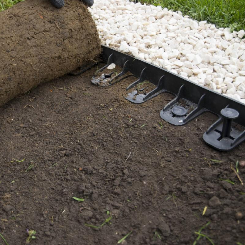 Telepítése gyors és egyszerű. Nincs szükség kertészeti végzettségre. A műanyag gyepszegélyt a már előkészített talajra helyezze, majd a beépített tüskékkel rögzítse. Kemény talaj esetén a talajcsavarral történő rögzítés is lehetséges, mivel a szegélyen csavarbemeneti kiállás található. Miután elhelyezte, terítse rá a földet, kavicsot, gyepszőnyeget stb. A szegély hajlítható és vágható, így nemcsak egyenes vonalban, hanem akár körben is elhelyezhető, például egy fa köré, amit fehér kavicságyással szegélyezhet. A kavicságyás stabilizálására és a szél, eső elleni védelem biztosítására is tökéletes. Az egyenes szakaszokon legalább két rögzítő karó alkalmazása javasolt, míg hajlított formákhoz több karóra lesz szükség. A rögzítő karó külön vásárolható, és az ár nem tartalmazza. Ha két szegélyt a rögzítésükkel tükrözve helyez el, medret alakíthat ki, amit földdel, kaviccsal vagy egyéb dekorációval tölthet fel. Kerti gyepszőnyeg esetén ajánlott a rögzíthető oldalakat a gyepszőnyeg alá tenni. Az előírásoknak megfelelően készül, és megfelel az Európai Unió követelményeinek.