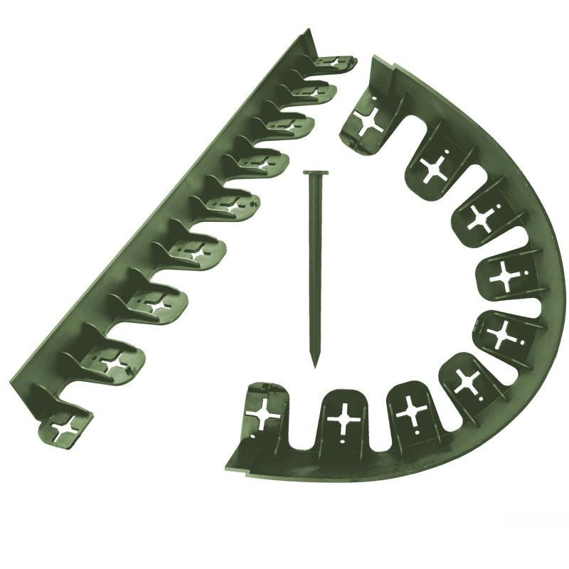 A műanyag gyepszegély telepítése rendkívül egyszerű, nem szükséges hozzá kertészeti végzettség. A már előkészített földre helyezze az ágyásszegélyt és rögzítse a tüskékkel. Ha kemény talajra kerül, használhat talajcsavart is a biztos rögzítéshez, a szegélyen kialakított csavarbemeneti kiállásnak köszönhetően. Ezután tehet rá földet, kavicsot, gyepszőnyeg szélét stb. Mivel a fűszegély hajlítható és vágható, nemcsak egyenes szakaszokra alkalmas, hanem kerekek köré is szépen elhelyezhető. A szegély stabilizálja a kavicságyást, és védelmet biztosít eső, szél és egyéb fizikai hatásokkal szemben. A telepítéshez szükséges lehet rögzítő karók vásárlása, melyek az árban nem szerepelnek. Két szegély segítségével optikai térválasztó medret alakíthat ki, amelyet különféle dekorációs anyagokkal, például kaviccsal tölthet fel. Ha már telepített gyepszőnyege van, javasoljuk, hogy a rögzíthető oldalt a gyepszőnyeg alá helyezze. A termék megfelel az Európai Unió által előírt követelményeknek. Bővebb információval kapcsolatban ne habozzon kapcsolatba lépni velünk vagy tekintse meg a termék videót.